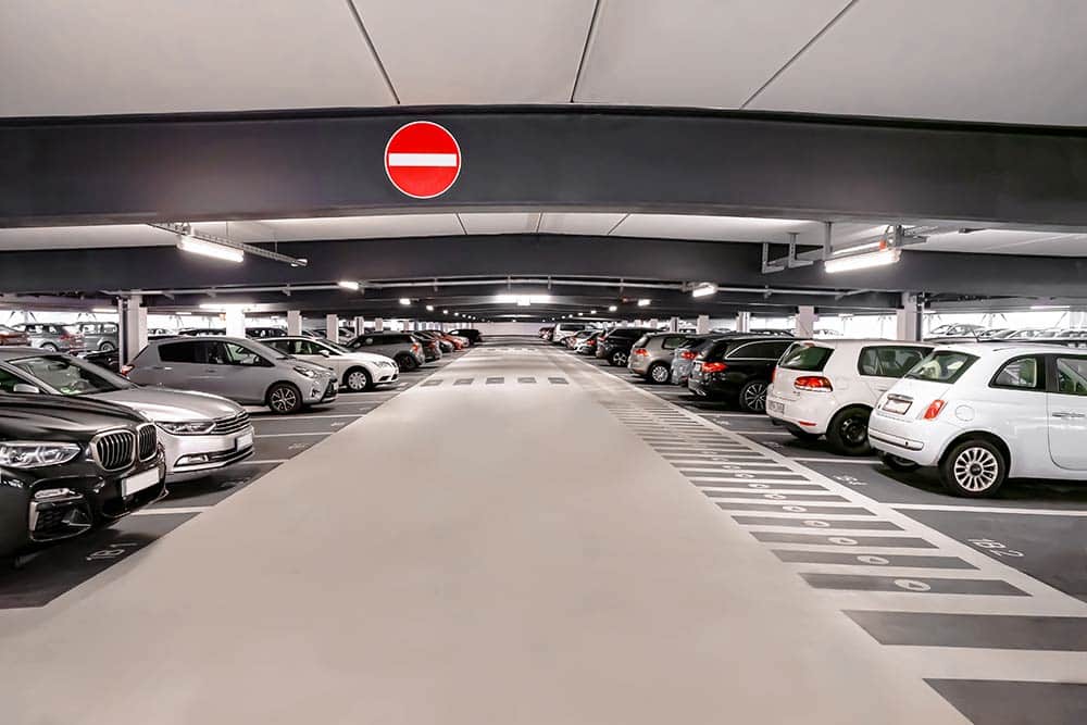 يقع على الجانب الآخر من مبنى المطار وعلى مسافة قريبة. يحتوي مرآب السيارات أيضًا على مساحات مخصصة للمعاقين جسديًا في المستويين الداخلي والخارجي.